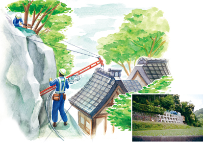 自然を残したまま安全を維持できること。これは今後、地球環境を守るため、地域の景観を守るために今後の斜面対策工事で最も重要なことだと私たちは考えています。SD工法は多くの現場で自然樹木を残したまま施工してきました。今後もより自然環境を残したまま施工できるよう創意工夫を重ねていきます。