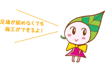クレーンが届かない場所でも施工が可能です。仮設も最小限で工事が行え環境に優しく、コスト・工程を軽減して作業が行えます。