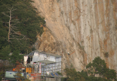 文化財に近接する法面の場合など、非常に狭い場合でもSD工法は確かな施工が可能です。