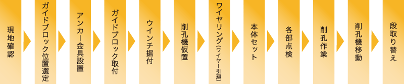 クレーンの届かない高所や、機械搬入が困難な狭所に最適な工法